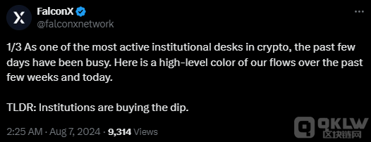 據crypto交易和經紀公司FalconX的最新報告,盡管市場面臨壓力,機構投資者對Bitcoin和Ethereum的興趣依然旺盛。FalconX指出,周日價格暴跌后,機構投資者開始積極“逢低買入”,并且幾乎所有投資者群體都是凈買家。