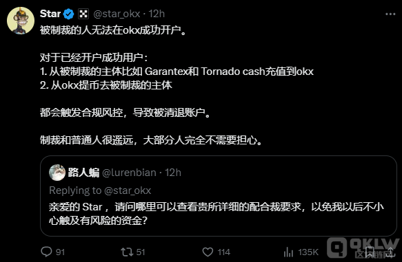 為了應對這些安全問題,crypto交易所Ou-易已迅速采取措施,禁止使用混合器。Ou-易首席執行官 Star 在其 X 賬戶上宣布,該平臺將禁止使用Tornado Cash的賬戶。這一措施旨在符合全球監管標準,并提升平臺對洗錢活動的防范能力。