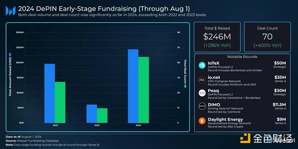 DePIN(Decentralization游戲基礎設施)保持持續增長。融資規模同比增長296%,總市值增長400%,至200億美元。下面我們來一起深入了解DePIN領域現狀。