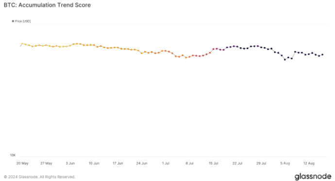 Glassnode的數據顯示,目前的累積傾向得分為0.94,接近1的值表示投資者對Bitcoin的購買興趣較高。這一數據支持了Bitcoin需求增加的趨勢,可能為第四季度的價格上漲奠定了基礎。