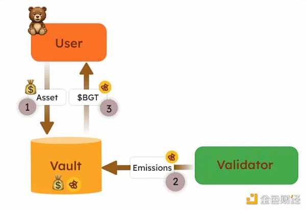 驗證者直接與用戶互動,最大化委托給他們的BGT。用戶將他們的BGT委托給驗證者,他們擁有的BGT越多,他們獲得的獎勵就越多。驗證者從這些獎勵中賺取費用。