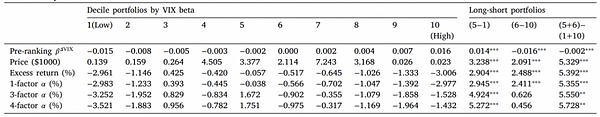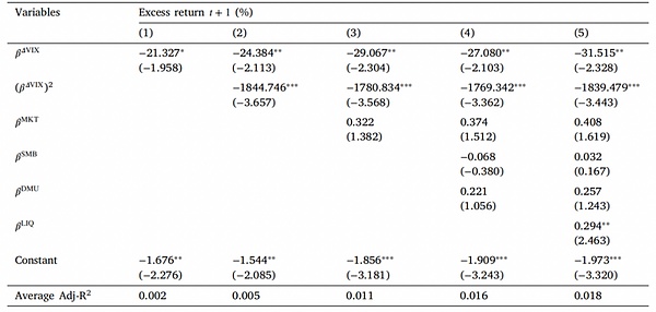 本文的主要研究問(wèn)題是:VIX的beta因子是否在Crypto的橫截面回報(bào)中定價(jià)。beta估計(jì)表明單個(gè)Crypto回報(bào)對(duì)特定風(fēng)險(xiǎn)因素的敏感性。對(duì)于每種Crypto,使用時(shí)間序列回歸模型來(lái)估計(jì)其對(duì)選定風(fēng)險(xiǎn)因素的敏感性。公式如下: