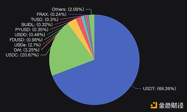 2024年7月14日的穩定幣市值前十占比,圖源DefiLlama