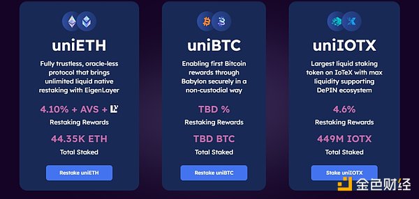 Bedrock是一種多資產流動性再質押協議,由與RockX合作設計的非托管解決方案提供支持。Bedrock利用其通用標準來釋放PoSTokens(例如ETH和IOTX)的流動性和最大價值,以及現有的流動質押Tokens(稱為uniETH和uniIOTX)。