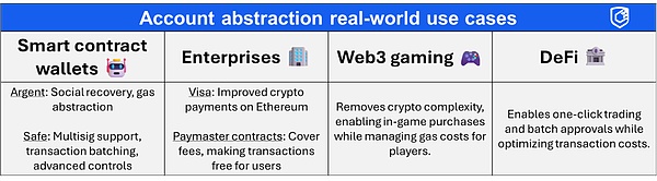 像Visa這樣的主要公司今天正在使用賬戶抽象。游戲使用它來簡化復雜性。DeFi應用使交易變得更加簡單。