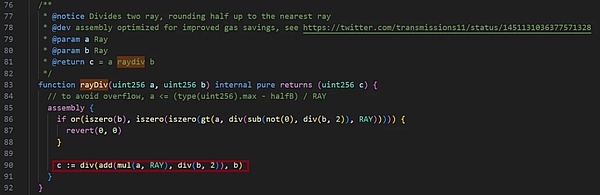 在AAVE和Compound中,都存在空市場中精度損失而造成的漏洞問題。如果在一個(gè)空市場的情況(即沒有用戶在市場中進(jìn)行借貸),由于cumulateToLiquidityIndex函數(shù)中l(wèi)iquidityIndex的值依賴于合約對(duì)應(yīng)的底層資產(chǎn)Tokens的數(shù)量,所以攻擊者可以通過閃電貸向合約存入大量的底層資產(chǎn)Tokens來操縱aToken的價(jià)格。
