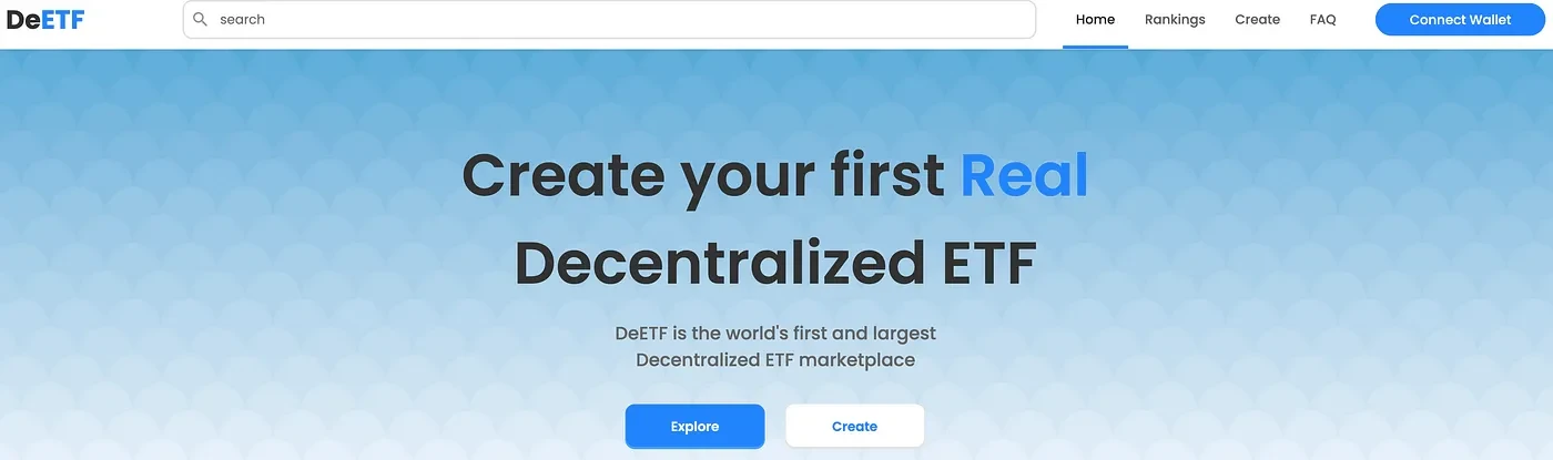 與此同時(shí),去中心化賽道也在悄悄行動。像 DeETF.org 這樣的項(xiàng)目,開始嘗試直接用智能合約去中心化地管理 ETF 組合,但這一時(shí)期的嘗試還只是初級階段。