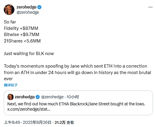 另一個(gè)引發(fā)關(guān)注的傳言涉及做市商JaneStreet的操作。有消息稱,該公司的"動(dòng)量欺騙"操作導(dǎo)致Ethereum在創(chuàng)出歷史新高后不到24小時(shí)內(nèi)陷入修正,被形容為"史上最殘酷"的操作之一。