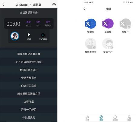 AI是小冰島APP的核心。小冰島APP主要玩法不僅是造出多個AI朋友,還能通過關鍵詞用AI創造小說、樂曲等。目前,小冰島已經開放了文學社、錄音棚兩個技能選項,還有演播廳、顏值委員會、童話工廠三個灰色選項待解鎖。