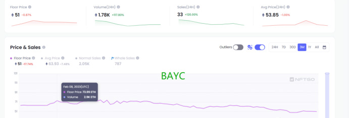 以BAYC為例,在今年1月中旬開始,地板從高點82ETH陰跌至低點44ETH,幾乎腰斬,現(xiàn)報價為51ETH。這一巨大的價格反轉(zhuǎn)已經(jīng)動搖了大多數(shù)NFT持有者的信仰。相比之下,加密貨幣市場的表現(xiàn)如此強(qiáng)勁,導(dǎo)致一些持有NFT的人轉(zhuǎn)而進(jìn)入加密貨幣市場。