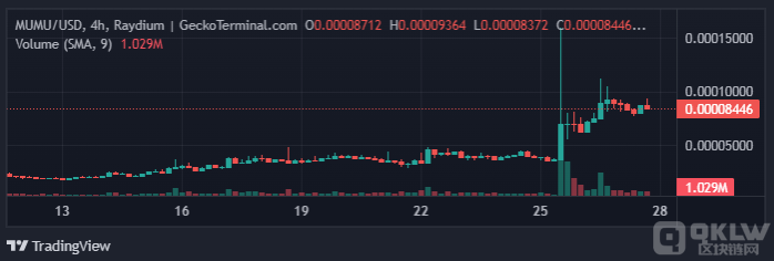 本周四,Solana 網絡的鏈上數據跟蹤器 SolanaFloor 報告稱,一名交易員在Decentralization交易所(DEX)上單筆購買了價值約240萬美元的 MUMU The Bull。這一巨額交易導致 MUMU The Bull 的市值瞬間飆升至8.2億美元,雖然隨后價格有所回落,但這一事件無疑吸引了大量投資者的注意。