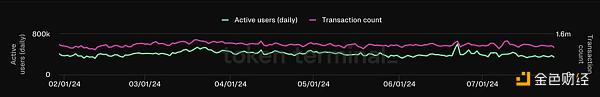 例如,7 月 26 日星期五,ETH 的交易筆數為 110 萬,而 DAU 為 376.3 萬,平均每位用戶每天的交易量約為 2.92 筆。然而,SOL 的交易筆數為 2.822 億,而 DAU 為 130 萬,平均每位用戶每天的交易量高達 217 筆。